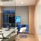 Electrochromic smart Film working priciple:When an AC voltage is applied to the EPC(electric polarized crystal)film, the particles are aligned under the action of the electric field, and light is transmitted through. Glass can change from opaque (DARK) state to transparent state in 1 second in the visible light range, and from transparent to opaque (DARK) in 1-5 seconds, at this time, it can block more than 95% of visible light and absorb 99.9% of UV light.