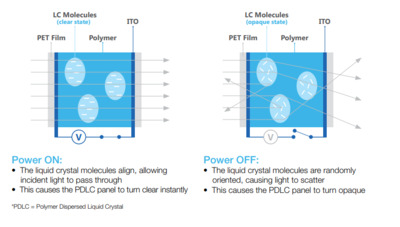 Polymer Dispersed Liquid Crystal (PDLC) film, is a type of switchable film that can transform glass from transparent to opaque with the application of an electric current. This innovative technology o…